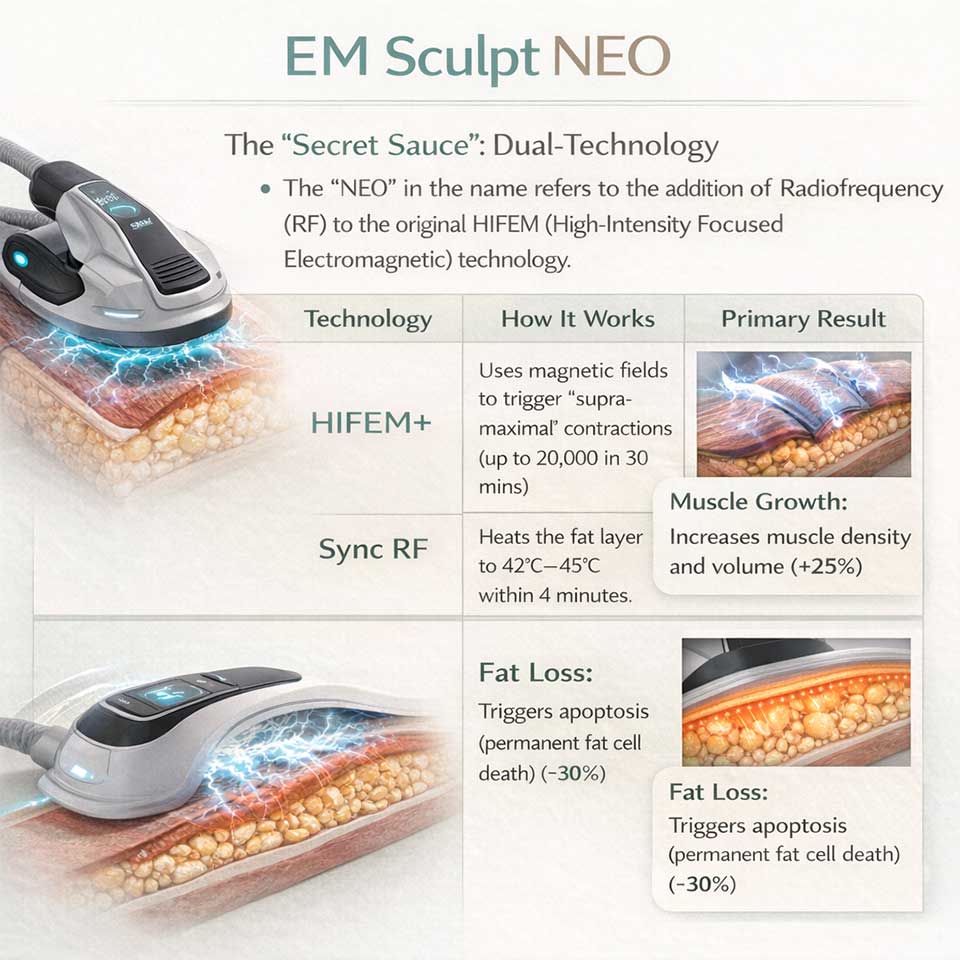 The technical superiority of EM Sculpt NEO is backed by multiple clinical studies showing significant improvements in body composition. On average, patients see a 30 percent reduction in subcutaneous fat and a 25 percent increase in muscle volume. These results typically become most visible about three months after the final session of the initial series. To get the best results, a series of four treatments is usually recommended, spaced about a week apart. This allows the body enough time to process the treated fat cells and build the new muscle protein strands effectively.