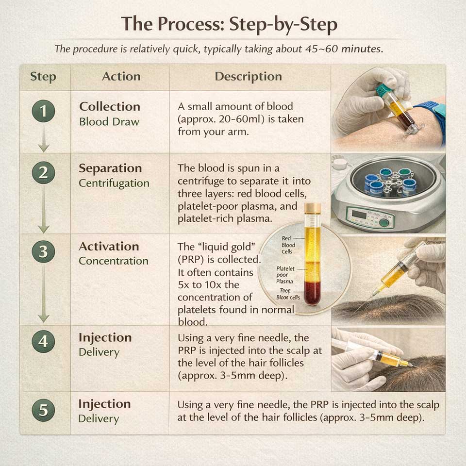 Hair Restoration PRP is a medical process that uses your own blood to naturally repair and regrow your hair. Within your blood are tiny cells called platelets, which act as the primary repair crew for your body. To start the process, Dr. Cyrus Sedaghat takes a small sample of your blood and spins it in a high speed machine called a centrifuge. This separation technique creates a concentrated liquid often called liquid gold because it contains up to five times the normal amount of growth factors. When this concentrated plasma is placed back into the scalp in Irvine, it sends a direct signal to your hair follicles to wake up and start producing thicker, stronger hair strands once again.