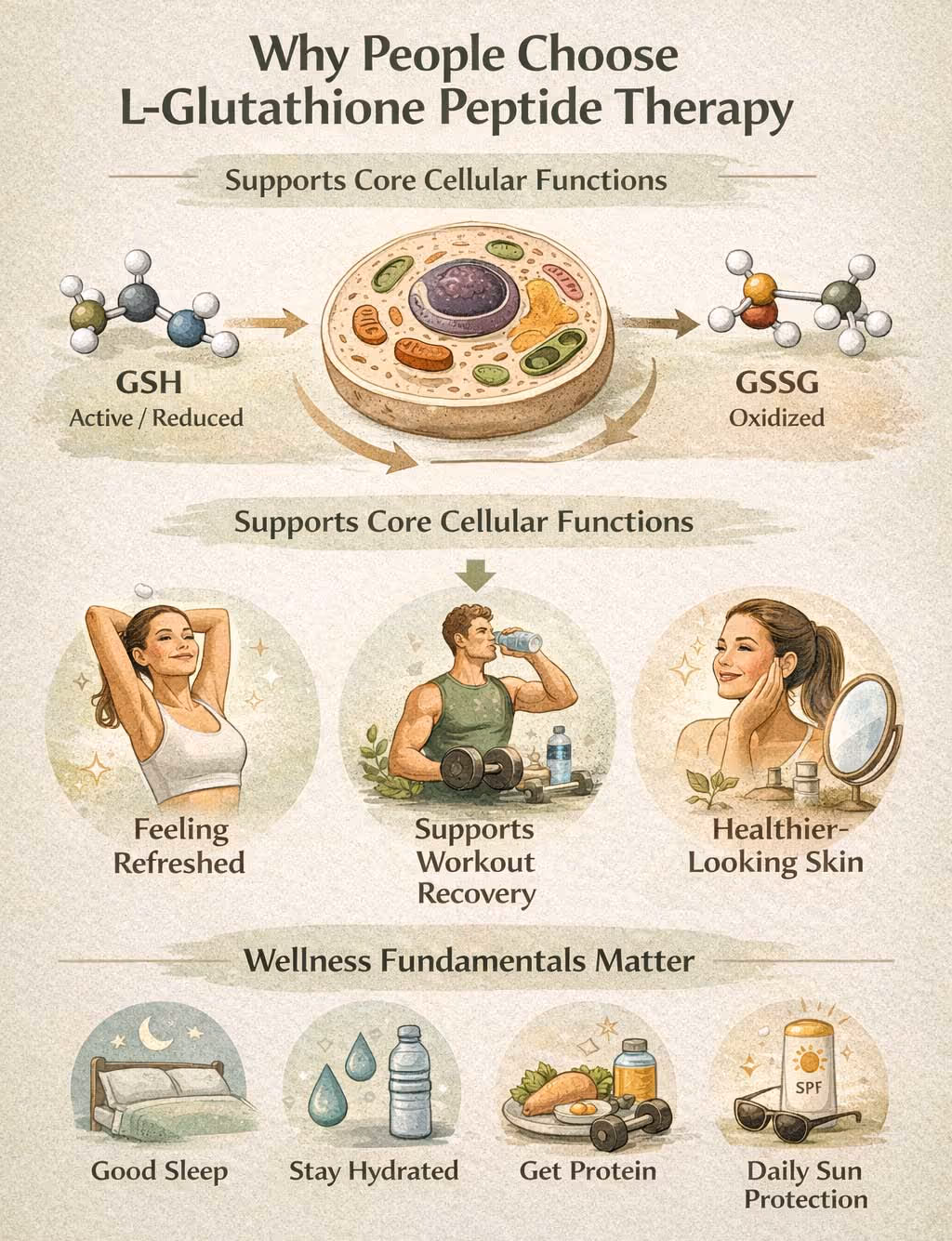People looking for L-Glutathione peptide in Irvine often want a wellness option that feels both practical and science-based. Glutathione is commonly chosen because it supports core cellular processes that influence how people feel day-to-day, especially when life is busy or stressful.